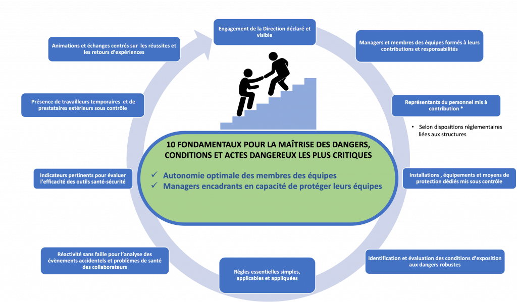 Notre vision est construite autour de 10 fondamentaux présents dans des organisations qui excellent en matière de Santé Sécurité :